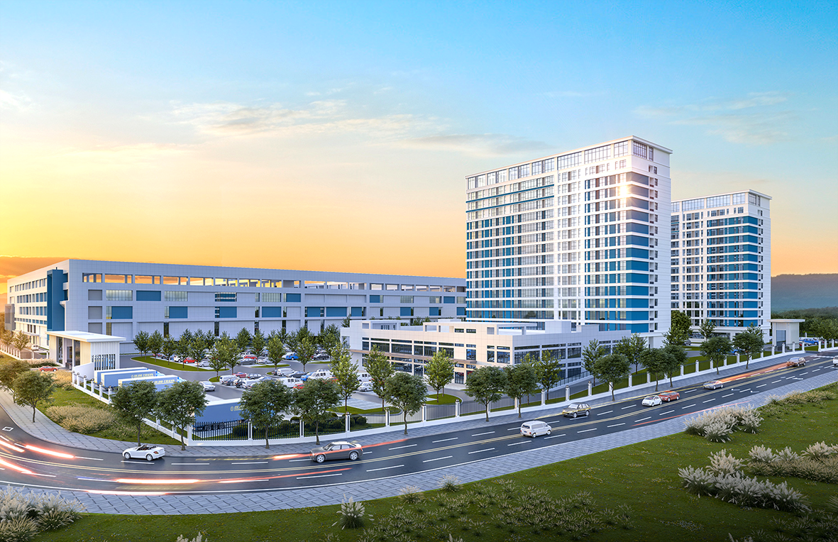 項目位于江蘇省昆山市,總占地面積四百多畝,建筑面積787071.1平方米,包含生產廠房、倉庫、宿舍樓等35棟建筑物。
